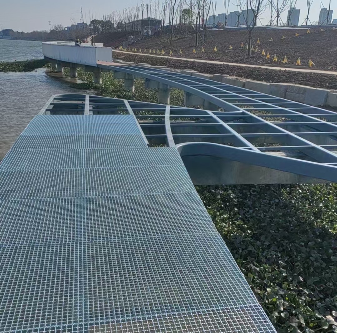 由上海彬煌钢结构有限公司施工安装的龙游湿地公园钢结构人行桥施工将进入收尾阶段! 一、Z型栈道