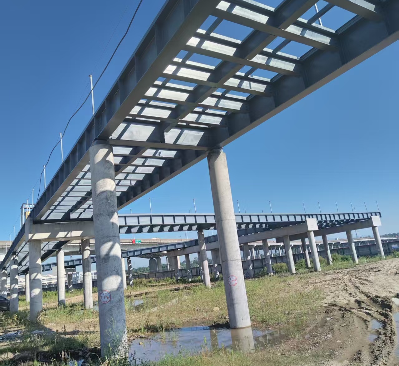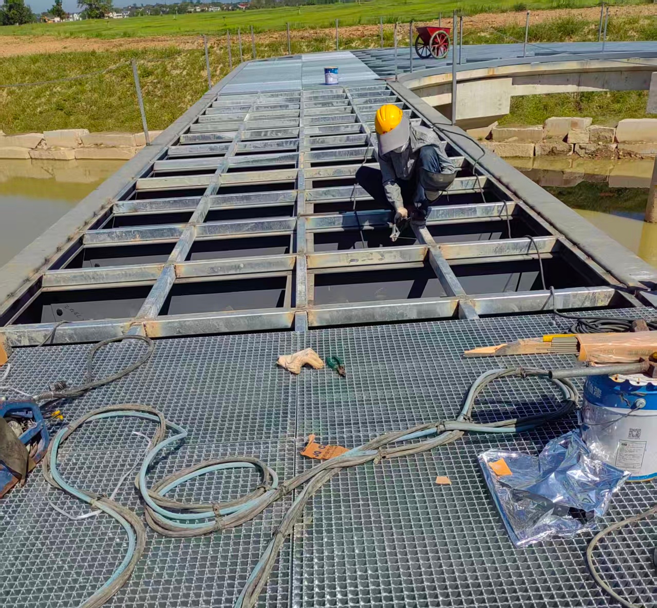 | 内河浅滩湿地人行桥钢结构工程施工进行中 |