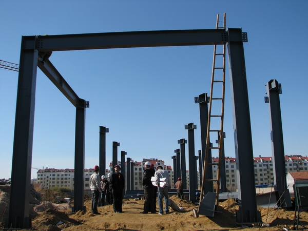 3.6.1 钢柱的种类:单层、多层钢柱;有长、短钢柱;断面形式分有:口、工、O、Ⅱ、Ⅲ形。 3.6.2 吊点选择 吊点的位置应根据钢柱形状、端面、长度、起重性能等情况确定。 1 一般钢柱弹性和刚性都很好,吊点采用一点正吊,吊耳放在柱顶处,柱身垂直、易于对线校正。通过柱重心位置,受起重机臂杆长度限制,吊点也可放在柱长1/3处,吊点斜吊,由于钢柱倾斜,对线校正较难。 2 对细长钢柱,为防止钢柱变形,可采用二点或三点 3 如果不采用焊接吊耳,直接在钢柱本身用钢丝绳绑扎时要注意两点。其一:钢柱(口、工型)四角做包角(用半圆钢管内夹角钢∟)以防止钢丝绳刻断;其二:在绑扎点处,为防止工字型钢柱,局部受挤压破坏,可加一加强肋板,吊装格构柱,绑扎点处加支撑杆。 3.6.3 起吊方法 对重型工业厂房大型钢柱又重又长,根据起重机配备和现场条件确定,可单机、二机、三机吊装。 1 旋转法:钢柱运到现场,起重机边起钩边回转使柱子绕柱脚旋转而将钢柱吊起,见《手册》P909页图9-60所示。 2 滑行法:单机或双机抬吊钢柱起重机只起钩,使钢柱脚滑行而将钢柱吊起的方法,为减少钢柱脚与地面的摩阻力,需在柱脚下铺设滑行道。见《手册》P909页图9-61所示。 3 递送法:双机或三机抬吊,为减少钢柱脚与地面的摩阻力,其中一台为副机吊点选在钢柱下面,起吊柱时配合主机起钩,随着主机的起吊,副机要行走或回转,在递送过程中,副机承担了一部分荷重,将钢柱脚递送到基础上面,副机摘钩,卸去荷载,此刻主机满载,将柱就位见《手册》P909页图9-62所示。 4 双机或多机抬吊注意事项: 1) 尽量选用同类型起重机。 2) 根据起重机能力,对起吊点进行荷载分配。 3) 各起重机的荷载不易超过其相应起重能力的80%。 4)多机抬吊,在操作过程中,要互相配合,动作协调,采用铁扁担起吊,尽量使铁扁担保持平衡,倾斜角度小,以防一台起重机失重而使另一台起重机超载,造成安全事故。 5) 信号指挥,分指挥必须听从总指挥。 3.6.4 轻钢结构钢柱安装 1 轻钢结构一般指门式刚架柱居多,由于这种柱都是变截面的,柱根小,柱顶大,头重脚轻,重心是偏心的,安装固定后,为防止倾倒必要时加临时支撑。 2 柱脚的锚栓应采用可靠方法定位,如见《手册》P933页图9-89所示。除测量直角边长外,还应测量对角线长度,在混凝土灌注前和灌注后钢结构安装前,均应对锚栓位置,确保基础的平面尺寸和标高符合设计尺寸要求。 3 标高调整,纵横十字线、垂直度及安装方法,参照一般钢柱安装工艺。 4 门式刚架轻型房屋钢结构的安装允许偏差,可按国家标准《钢结构工程施工质量验收规范》GB50205—2001的有关规定执行。 3.6.5 钢柱校正 包括柱基标高调整,对准纵横十字线,柱身垂偏。 1 单层结构钢柱校正 1)柱基标高调整。根据钢柱实际长度,柱底平整度,钢牛腿顶部距柱底部距离,重点要保证钢牛腿顶部标高值,来决定基础标高的调整系数。 具体做法有:首层柱安装时,可在柱子底板下的地脚螺栓上加一个调整螺母,螺母上表面的标高调整到与柱底板标高齐平,放上柱子后,利用底版下的螺母控制柱子的标高,精度可达±1mm以内。柱子底版下预留的空隙,可以用无收缩砂浆以捻浆法填实。使用这种方法时,对地脚螺栓的强度和刚度应进行计算。 2)纵横十字线:钢柱底部制作时,在柱底板侧面,用钢冲打出互相垂直的四个面,每个面一个点,用三个点与基础面十字线对准即可,争取达到点线重合,如有偏差可借线。 对线方法;起重机不脱钩的情况下,将三面线对准缓慢降落至标高位置。为防止预埋螺栓与柱底版螺孔有偏差,设计时考虑偏差数值,适当将螺孔加大,上压盖板焊接解决。 3)柱身垂偏校正:采用缆绳校正方法,用两台呈90o的经纬仪找垂直,在校正过程中不断调整柱底版下螺母,直至校正完毕,将柱底版上面的2个螺母拧上,缆绳松开不受力,柱身呈自由状态,再用经纬仪复核,如有偏差,调整下螺母,无误,将上螺母拧紧。地脚螺栓的紧固力一般有设计规定,地脚螺栓紧固力见表1。地脚螺栓螺母一般可用双螺母,也可在螺母拧紧后,将螺母与螺杆焊实。 表1 地脚螺栓紧固力 地脚螺栓直径(mm) 紧固轴力(KN) 30 60 36 90 42 150 48 160 56 240 64 300 2 高层及超高层钢结构钢柱校正:主要是控制钢柱的水平标高,十字轴线位置和垂直度。测量是安装的关键工序。 (1)柱基标高的调整,首层柱垂偏校正,与单层钢结构钢柱校正方法相同。不同点是高层及超高层钢结构,地下室部分钢都是劲性钢柱,钢柱的周围都布满了钢筋,调整标高,对线找垂直,都要适当地将钢筋梳理开,才能进行工作。 (2)顶标高调整和其他节框架钢柱标高控制可以用两种方法:一是按相对标高安装,另一种按设计标高安装,通常按相对标高安装。钢柱吊装就位后,用大六角高强度螺栓固定连接,即上下耳板,不加紧,通过起重机起吊,撬棍微调柱间间隙。量取上下柱顶预先标定标高值,符合要求后打入钢锲、点焊限制钢柱下落,考虑到焊缝收缩及压缩变形,标高偏差调整至5mm以内。柱子安装后在柱顶安置水平仪,测相对标高,取得合理值为零点,以零点为标准进行换算各柱顶线,安装中以线控制,将标高测量结果与下节柱顶预检长度对比进行综合处理。超过5mm对柱顶标高作调整,调整方法是采用填塞一定厚度的低碳钢钢板。 (3)第二节柱纵横十字线校正。为上下柱不出现错口,尽量做到上下柱十字线重合,如有偏差,在